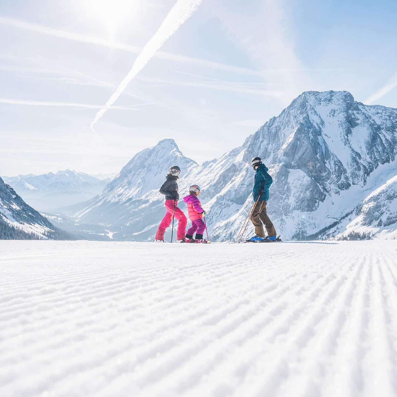 Aan de voet van de imposante Zugspitze – met 2.962 meter de hoogste berg van Duitsland – ligt net over de Oostenrijkse grens de Tiroler Zugspitz Arena. Slechts 800 kilometer rijden vanaf Nederland vind je hier één van de populairste én meest toegankelijke familieskigebieden van Tirol, met charmante dorpen als Ehrwald, Lermoos, Bichlbach, Berwang en Biberwier.