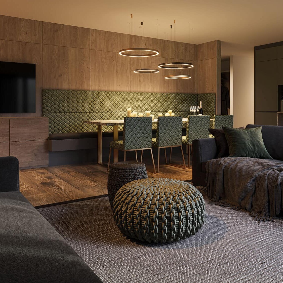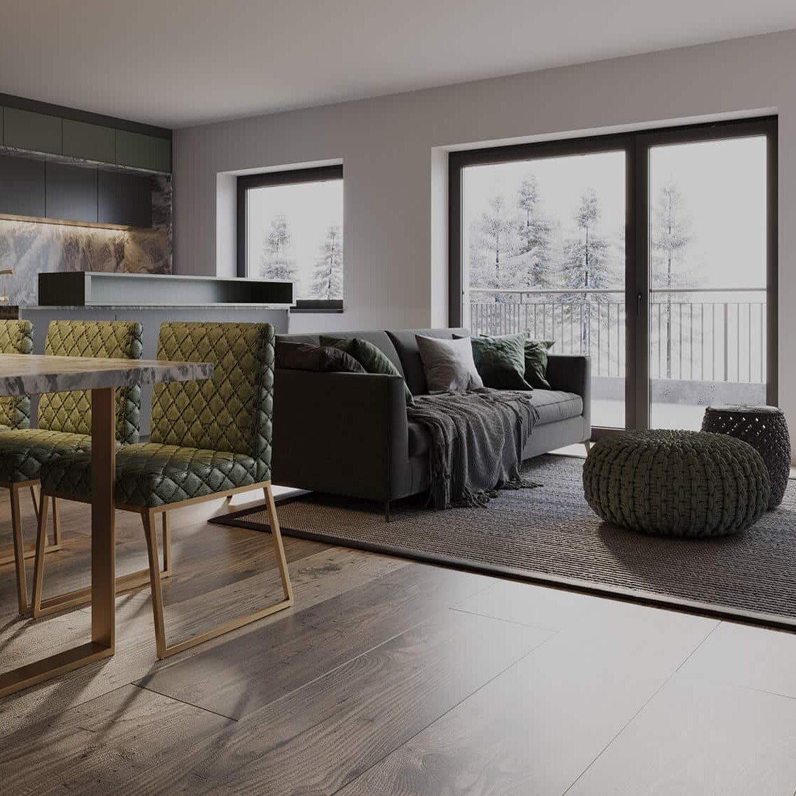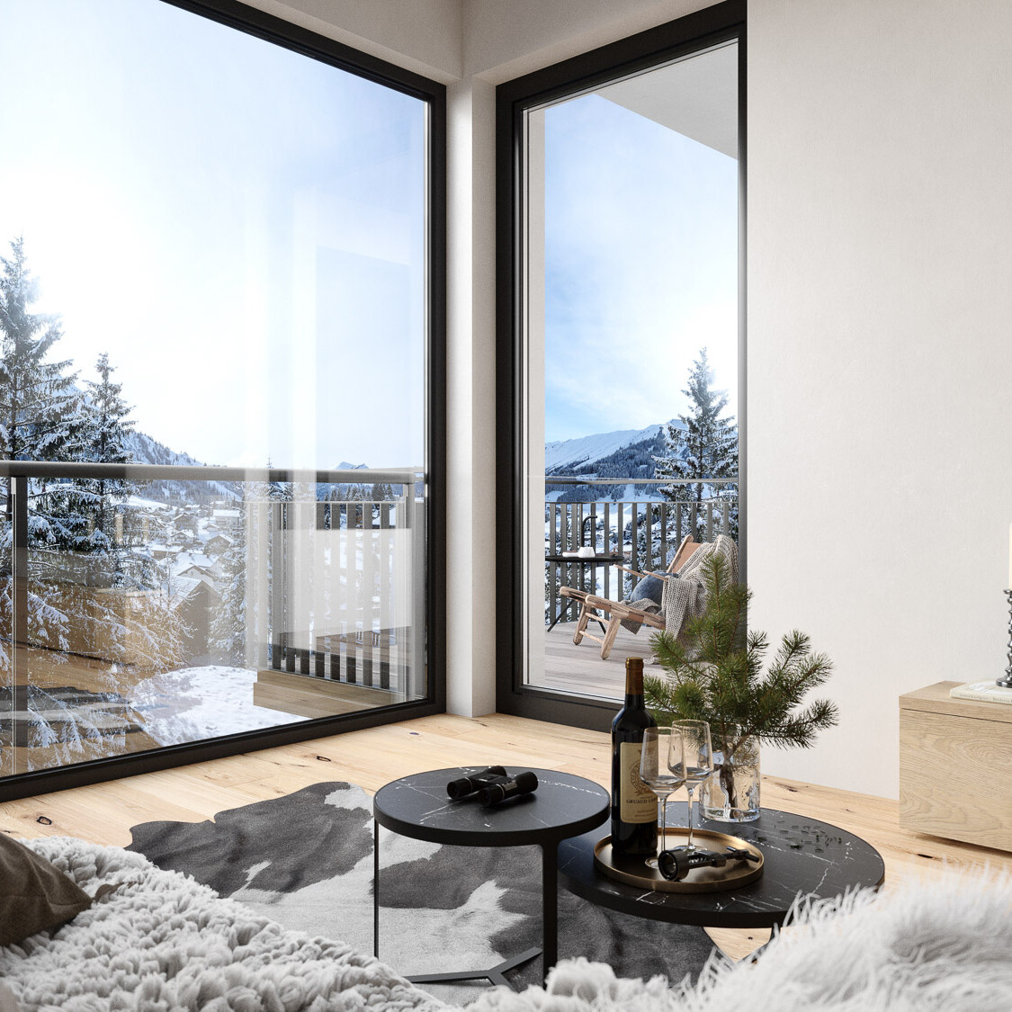 Vanuit de woonkamer leidt een openslaande deur naar het ruime zonneterras, waar je kunt genieten van een eettafel in de zon, een verwarmd bad en de rust van de bergen. De aanwezigheid van een Finse sauna maakt de privé wellness ervaring helemaal compleet.